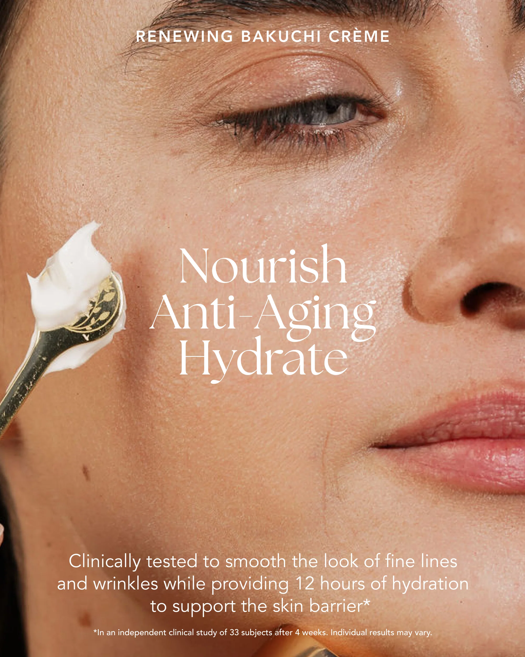 Our deeply nourishing moisturizer harnesses the power of nature's retinol, the Bakuchi Seed. This rich, velvety créme is clinically tested to soften the look of fine lines and wrinkles and provide 12 hours of hydration to support skin barrier function. This smooth, luxurious treatment will quickly become your skin’s best-kept secret.