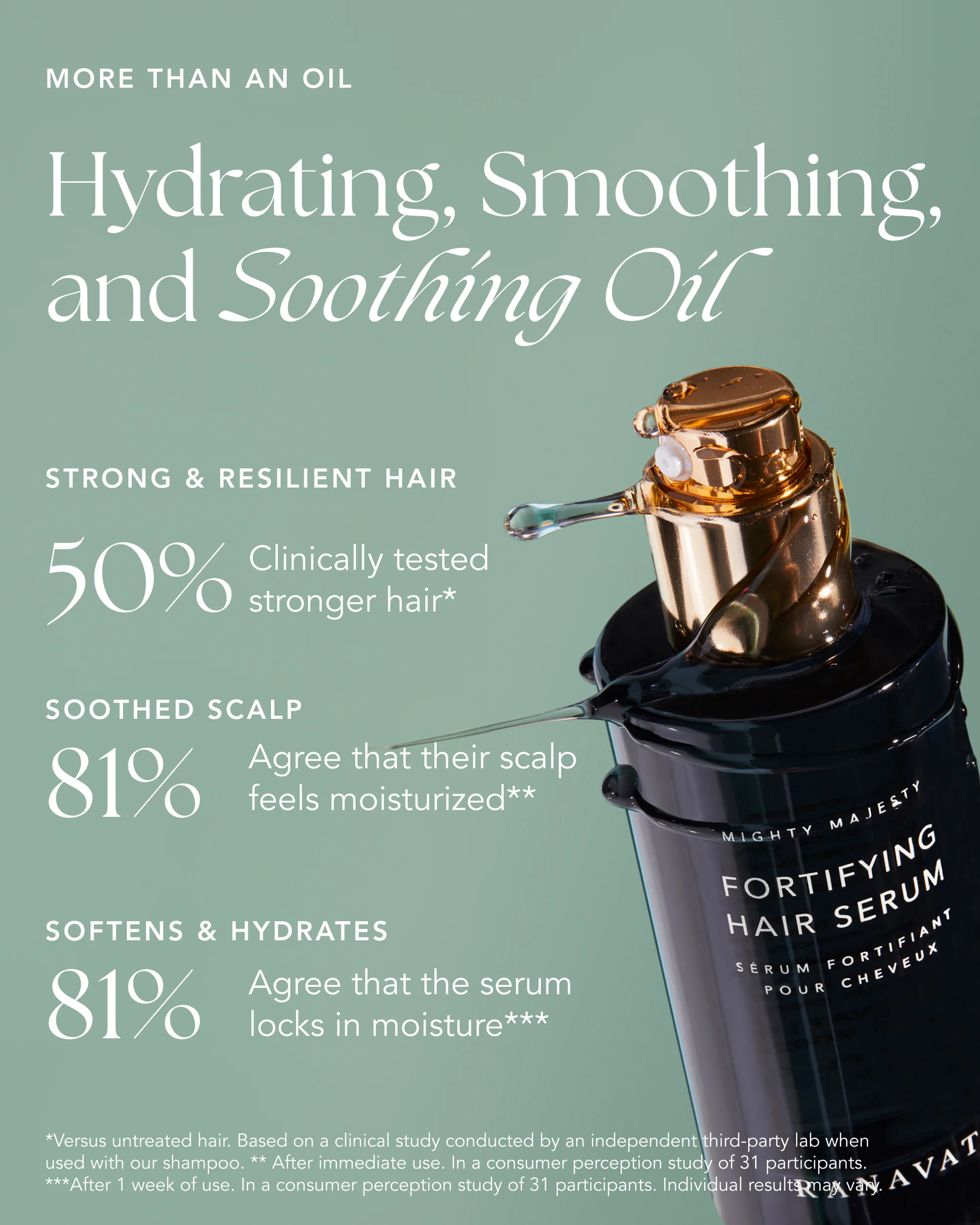 Fortifying Hair Serum Clinical Results: 50% Stronger hair* *Versus untreated hair. Based on a clinical study conducted by an independent third-party lab when used with our shampoo. Individual results may vary.