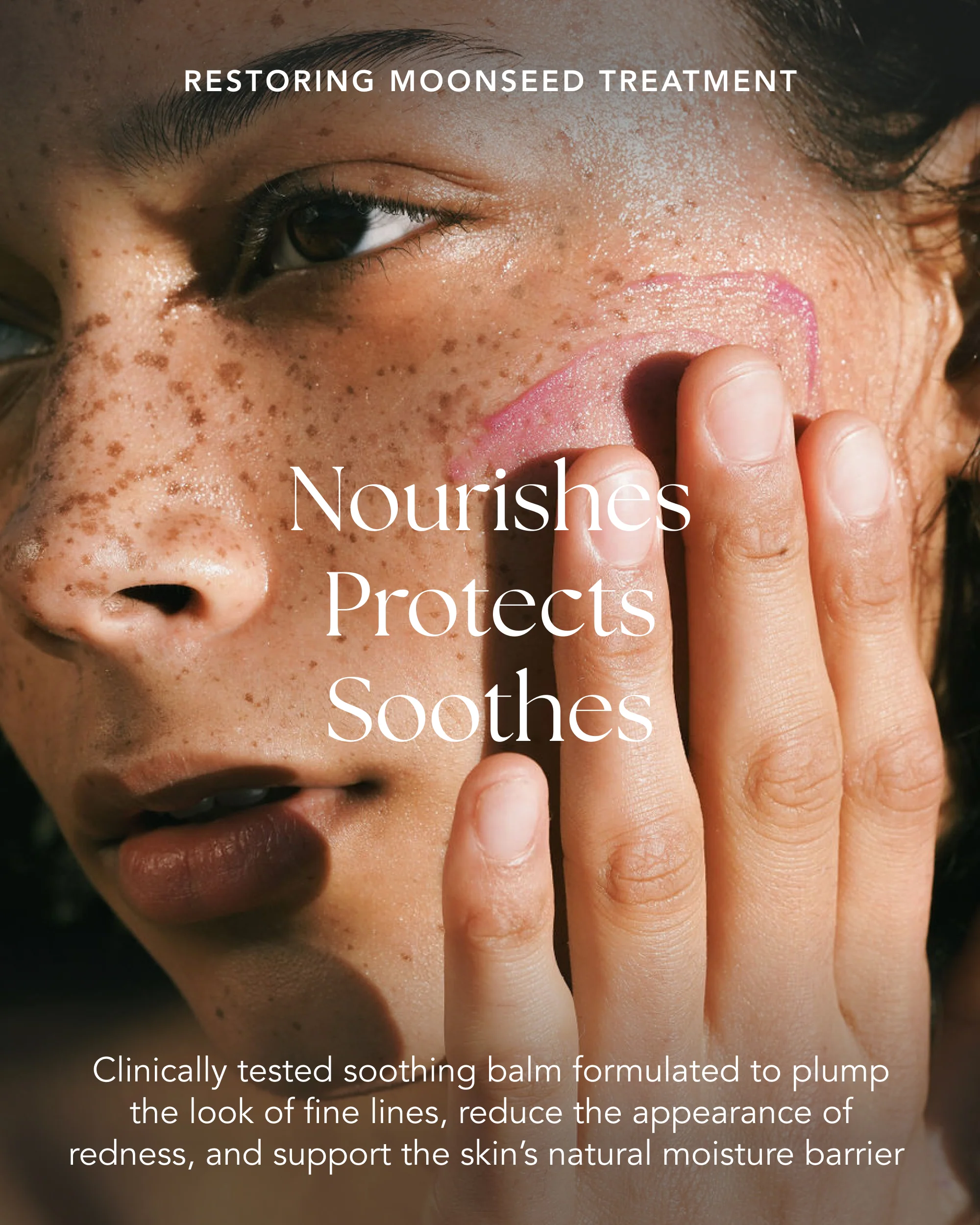 This innovative restorative treatment transforms from a solid balm into a decadent oil for overnight rejuvenation. Featuring over 30 Ayurvedic ingredients, it helps reduce the appearance of fine lines, soothe redness & irritation, and supports healthy skin barrier function. Wake up to calm, happy skin.