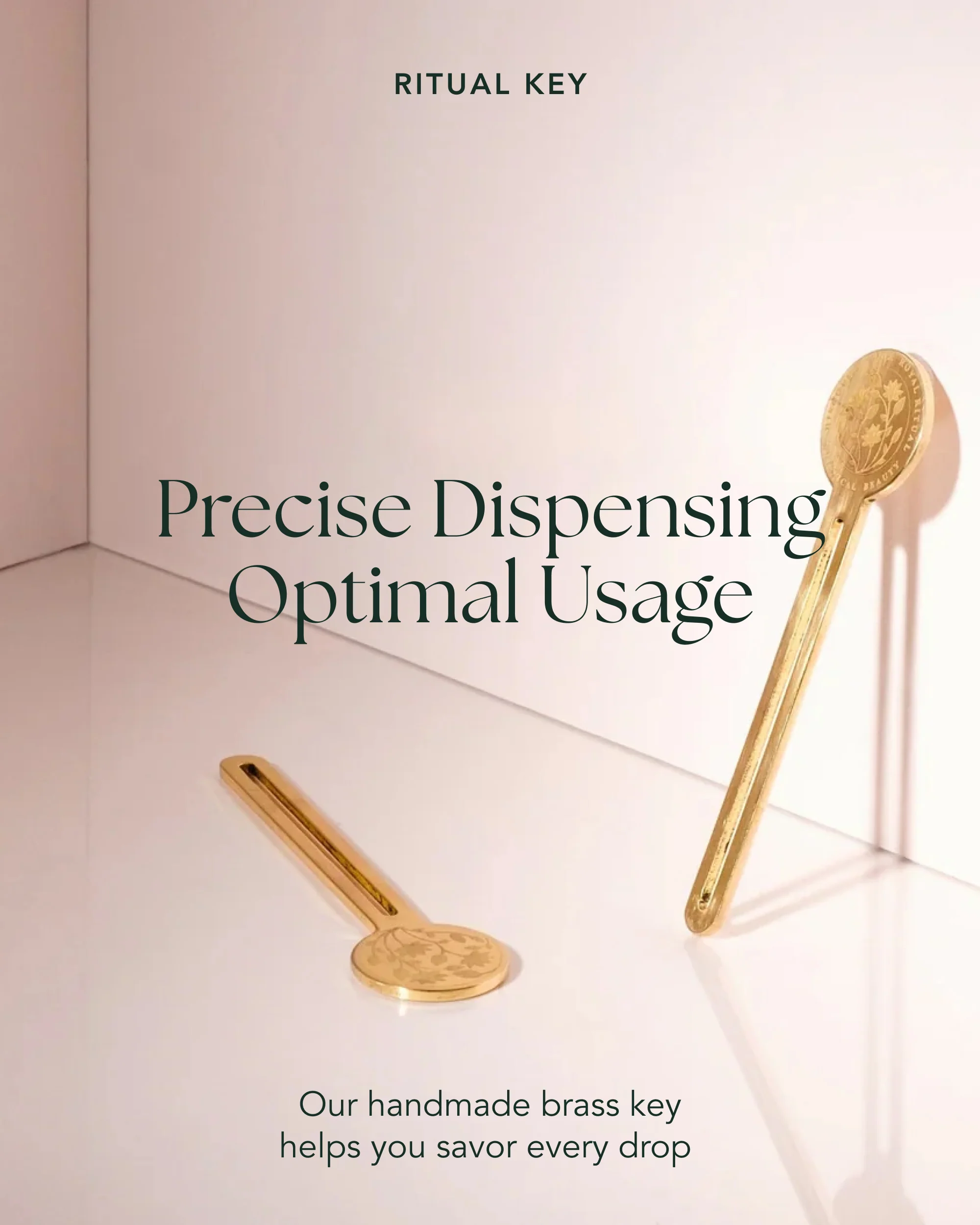 Our handmade Ritual Key is crafted from 100% pure brass and polished to perfection. Use our chic key to beautifully squeeze every last drop of your precious treatments. Slide the key over the top end of your Cream Cleanser, Facial Polish or Glossing Hair Masque tube. Gently fold the tube key, pushing the product down towards the opening to extract the desired amount.